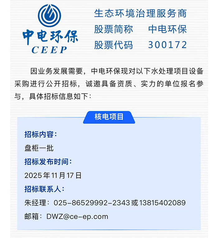 中電環(huán)保股份有限公司是南京市首家環(huán)保上市公司(股票簡(jiǎn)稱:中電環(huán)保,股票代碼:300172),南京環(huán)保產(chǎn)業(yè)協(xié)會(huì)會(huì)長(zhǎng)單位,國(guó)家級(jí)聯(lián)盟理事長(zhǎng)單位,是生態(tài)環(huán)境治理服務(wù)商,主營(yíng)(3+1):水務(wù)、固危廢、煙氣治理及產(chǎn)業(yè)創(chuàng)新平臺(tái),包括:工業(yè)水處理、污水處理及水環(huán)境綜合治理;固危廢土壤、污泥餐廚垃圾處理;煙氣及VOCS治理;智慧環(huán)保;高端裝備等。