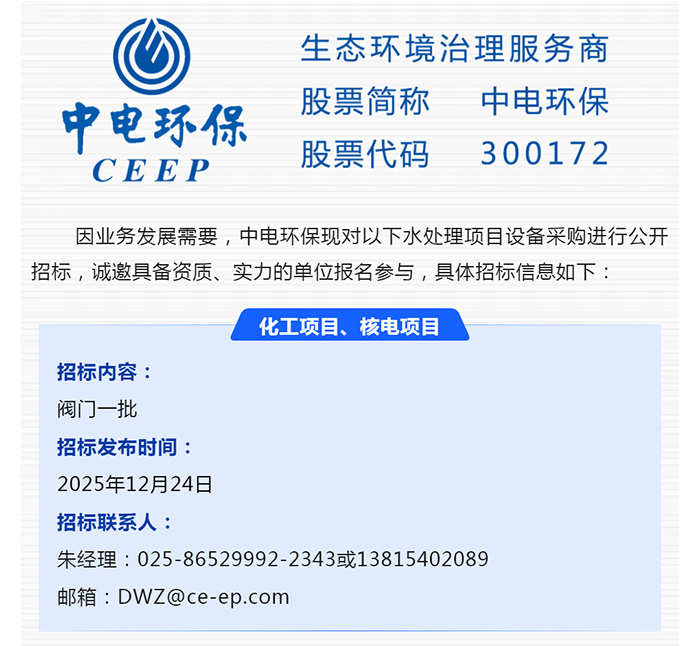 中電環(huán)保股份有限公司是南京市首家環(huán)保上市公司(股票簡(jiǎn)稱:中電環(huán)保,股票代碼:300172),南京環(huán)保產(chǎn)業(yè)協(xié)會(huì)會(huì)長(zhǎng)單位,國(guó)家級(jí)聯(lián)盟理事長(zhǎng)單位,是生態(tài)環(huán)境治理服務(wù)商,主營(yíng)(3+1):水務(wù)、固危廢、煙氣治理及產(chǎn)業(yè)創(chuàng)新平臺(tái),包括:工業(yè)水處理、污水處理及水環(huán)境綜合治理;固危廢土壤、污泥餐廚垃圾處理;煙氣及VOCS治理;智慧環(huán)保;高端裝備等。