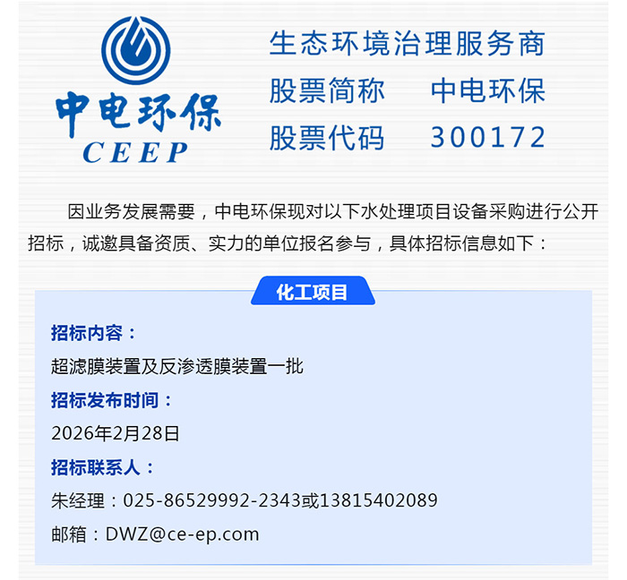 【招標(biāo)-26-06期】中電環(huán)保誠邀參與:水處理項目設(shè)備采購公開招標(biāo)